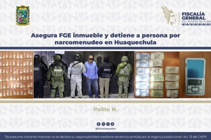 CIUDAD DE PUEBLA, Pue.- La Fiscalía General del Estado de Puebla (FGE) llevó a cabo un cateo en un inmueble del municipio de Huaquechula por su probable relación con delitos contra la salud. El 19 ...