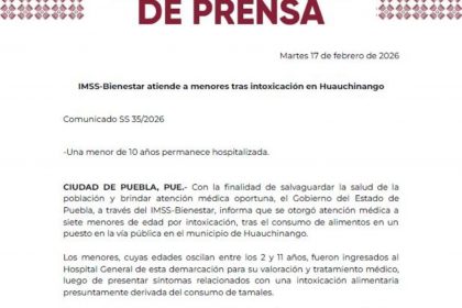 Siete menores de edad fueron atendidos por intoxicación alimentaria en el municipio de Huauchinango, luego de consumir alimentos adquiridos en un puesto ambulante de la vía pública, informó el IMS...