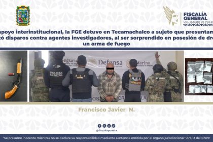 Tecamachalco, Pue.– La Fiscalía General del Estado (FGE), en coordinación con autoridades federales y estatales, detuvo en flagrancia a Francisco Javier N., de 38 años de edad, por su presunta re...
