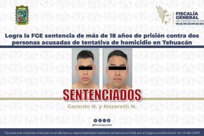 TEHUACÁN, PUE. (09 de febrero, 2026) – La Fiscalía General del Estado de Puebla (FGE) logró que la autoridad judicial dictara una sentencia condenatoria de 18 años y 4 meses de prisión contra G...