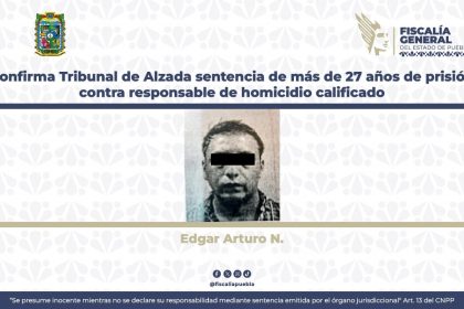 Puebla, Pue. — El Tribunal de Alzada confirmó la sentencia de primer grado con base a los argumentos vertidos por la Fiscalía General del Estado, contra Guadalupe N., elemento de la Policía Munic...
