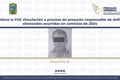 La Fiscalía General del Estado de Puebla informa que derivado de los actos de investigación realizados, se obtuvo la vinculación a proceso de Mauricio N., señalado como probable autor del delito d...