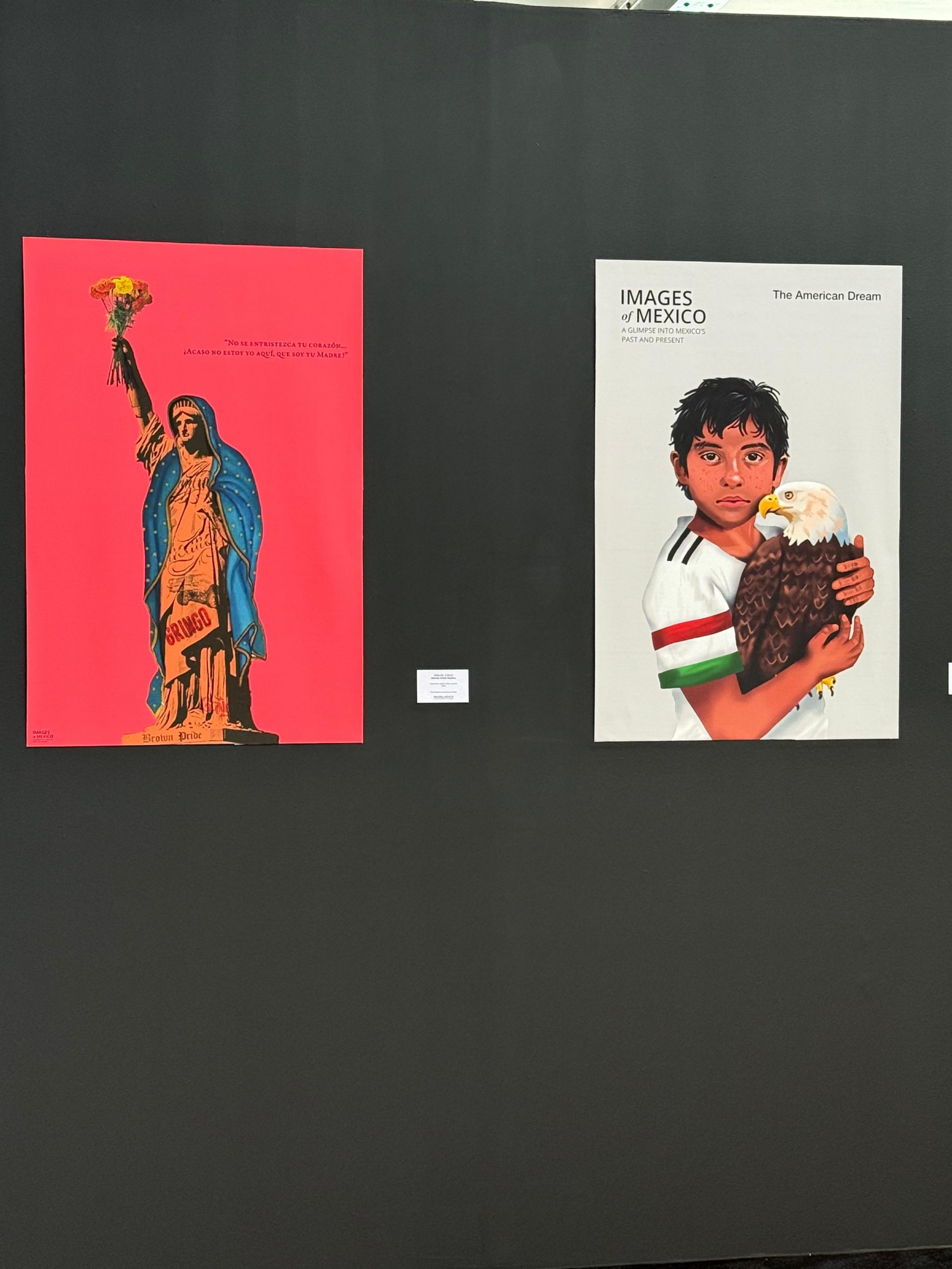 La primera exposición, “Imágenes de México: Un vistazo al pasado y presente de México”, reúne 34 carteles creados por estudiantes de diseño de la UDLAP, la Universidad IBERO Puebla y la Universidad Autónoma de la Ciudad de México. Cada obra refleja desde diferentes perspectivas la situación actual de México, abordando temas como identidad, historia, cultura y los desafíos sociales que enfrentan sus habitantes.
