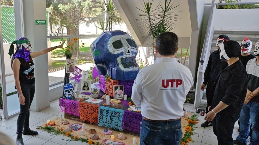 Puebla, Pue. — En el marco de la conmemoración del Día de Muertos, el rector de la Universidad Tecnológica de Puebla (UTP), Jesús Morales Rodríguez, recorrió las ofrendas elaboradas por las y los estudiantes de distintas carreras, quienes demostraron creatividad, talento e innovación, al integrar elementos tecnológicos en sus trabajos y combinar la tradición con los conocimientos adquiridos en su formación académica.