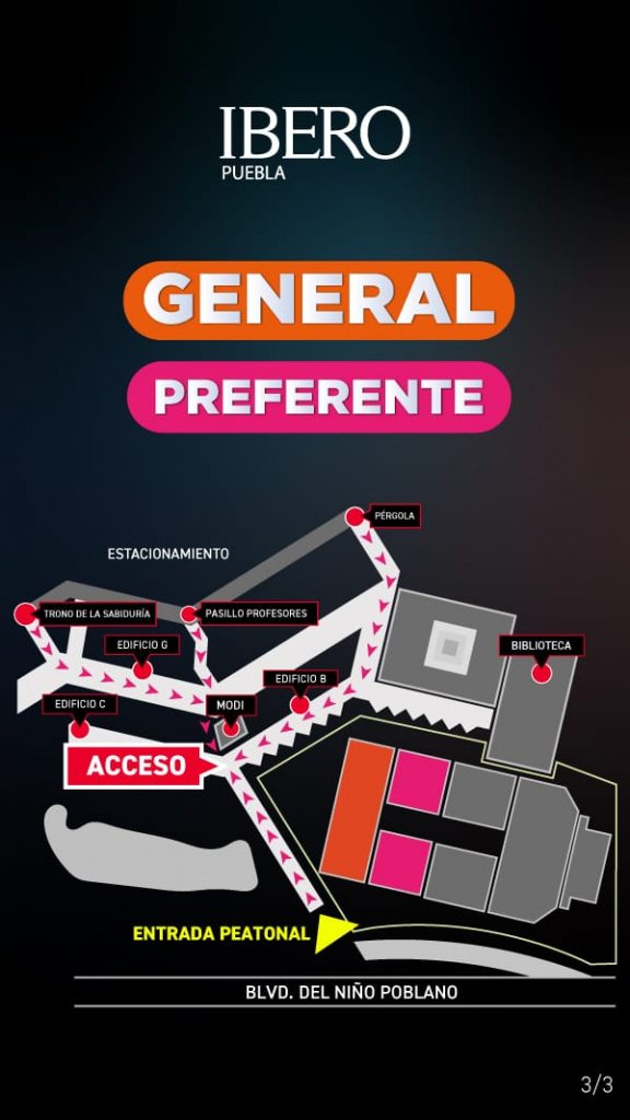 - Zonas GRAN VIP y VIP: Acceso entre el Edificio A y la Biblioteca Pedro Arrupe, SJ.